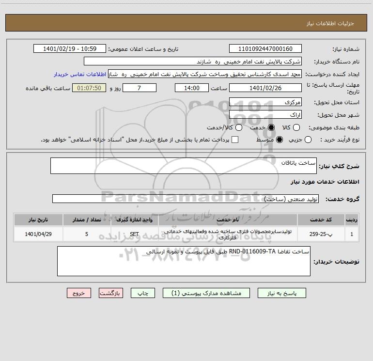 توضیحات خریدار:ساخت تقاضا RND-0116009-TA طبق فایل پیوست و نمونه ارسالی