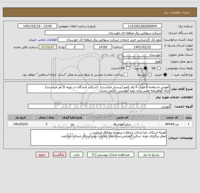 نام دستگاه خریدار:شرکت سهامی برق منطقه ای خوزستان