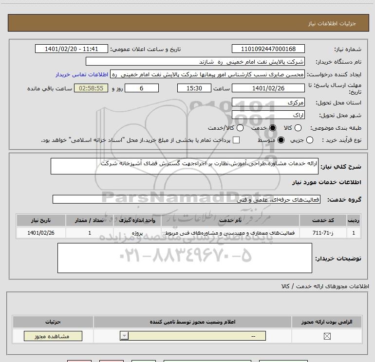 شرح کلی نیاز: ارائه خدمات مشاوره،طراحی،آموزش،نظارت بر اجراءجهت گسترش فضای آشپزخانه شرکت