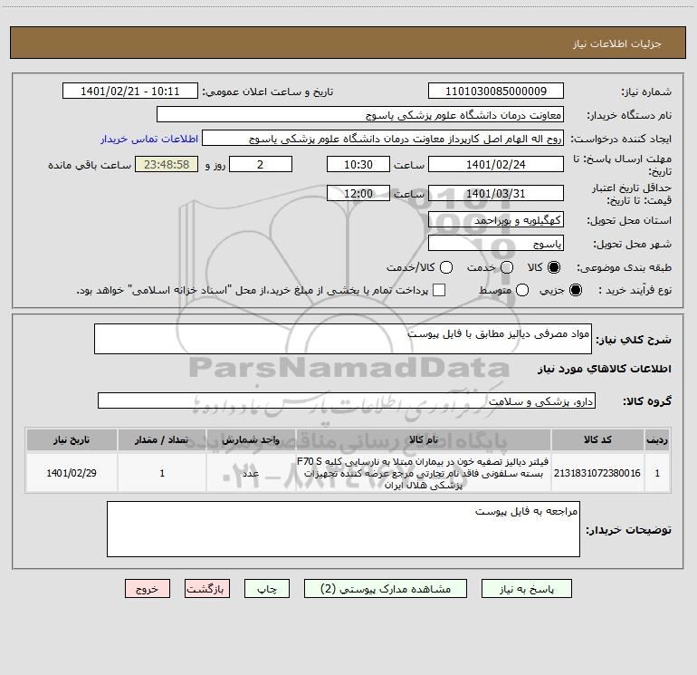 نام دستگاه خریدار:معاونت درمان دانشگاه علوم پزشکی یاسوج