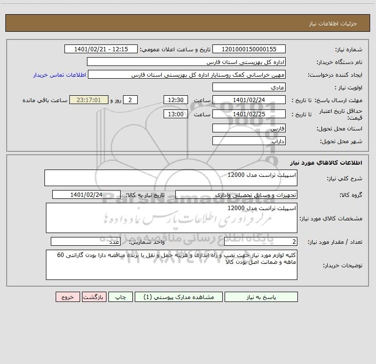 نام دستگاه خریدار:اداره کل بهزیستی استان فارس