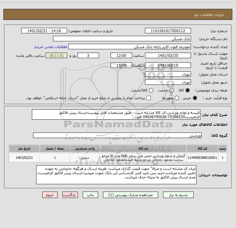 شرح کلی نیاز: البسه و لوازم ورزشی-کد کالا مشابه است - طبق مشخصات فایل پیوست-ارسال پیش فاکتور الزامیست75358220-09026795026 فتوت