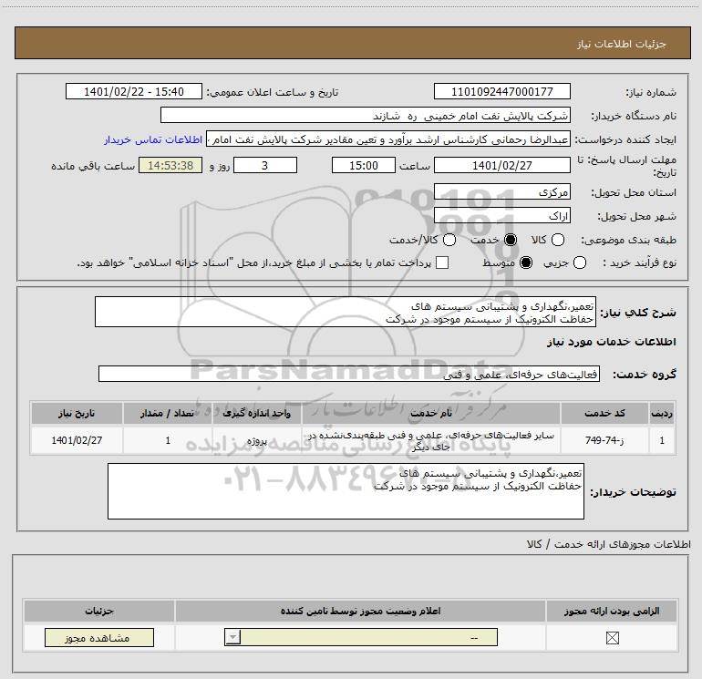 استعلام تعمیر،نگهداری و پشتیبانی سیستم های حفاظت الکترونیک از سیستم موجود در شرکت, استعلام تعمیر،نگهداری و پشتیبانی سیستم های حفاظت الکترونیک از سیستم موجود در شرکت