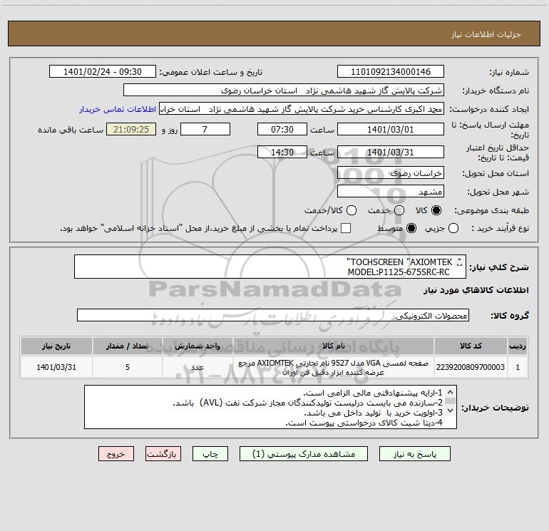 نام دستگاه خریدار:شرکت پالایش گاز شهید هاشمی نژاد استان خراسان رضوی