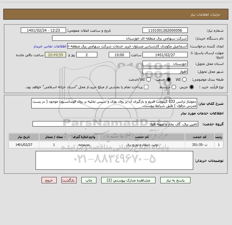 نام دستگاه خریدار:شرکت سهامی برق منطقه ای خوزستان