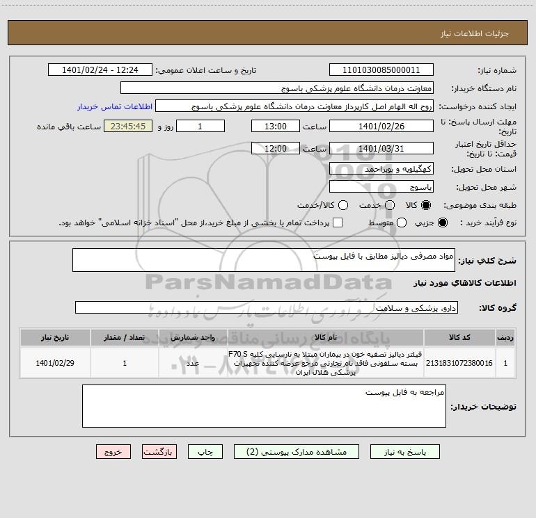 نام دستگاه خریدار:معاونت درمان دانشگاه علوم پزشکی یاسوج