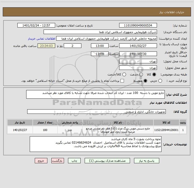 شرح کلی نیاز: جارو مویی با دسته 100 عدد - ایران کد انتخاب شده صرفا جهت تشابه با کالای مورد نظر میباشد