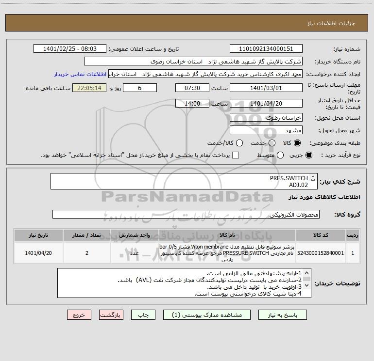 نام دستگاه خریدار:شرکت پالایش گاز شهید هاشمی نژاد استان خراسان رضوی