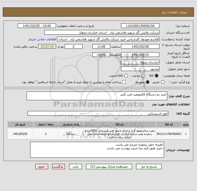 شرح کلی نیاز: خرید دو دستگاه الکتروپمپ لجن کش