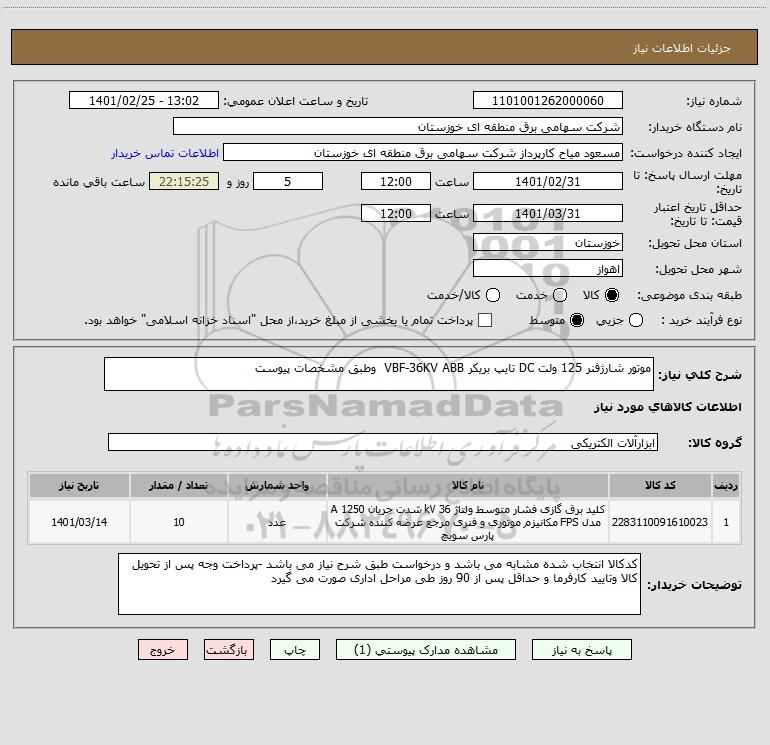 شرح کلی نیاز: موتور شارژفنر 125 ولت DC تایپ بریکر VBF-36KV ABB وطبق مشخصات پیوست