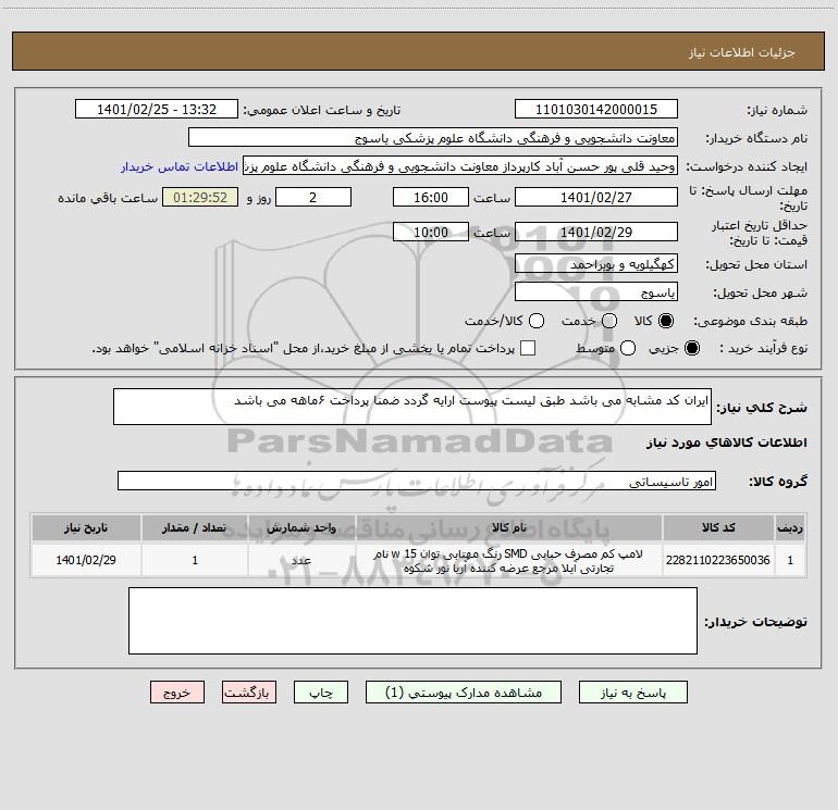 نام دستگاه خریدار:معاونت دانشجویی و فرهنگی دانشگاه علوم پزشکی یاسوج