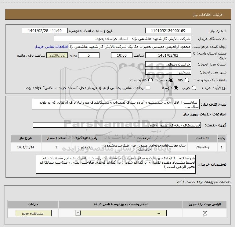 نام دستگاه خریدار:شرکت پالایش گاز شهید هاشمی نژاد استان خراسان رضوی