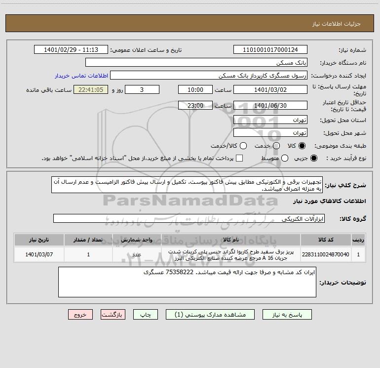 استعلام تجهیزات برقی و الکتورنیکی مطابق پیش فاکتور پیوست. تکمیل و ارسال پیش فاکتور الزامیست و عدم ارسال آن به منزله انصراف میباشد., استعلام تجهیزات برقی و الکتورنیکی مطابق پیش فاکتور پیوست. تکمیل و ارسال پیش فاکتور الزامیست و عدم ارسال آن به منزله انصراف میباشد.