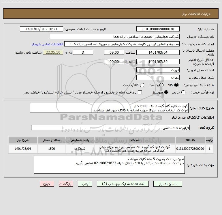 استعلام گوشت قلوه گاه گوسفندی 1500کیلو ایران کد انتخاب شده صرفا جهت تشابه با کالای مورد نظر میباشد ؟