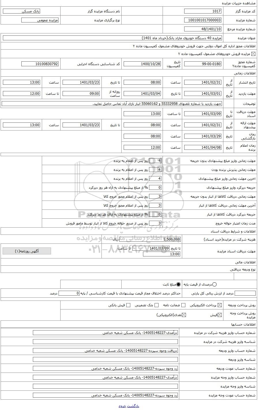 کد مزایده گزار1017نام دستگاه مزایده گزاربانک مسکن