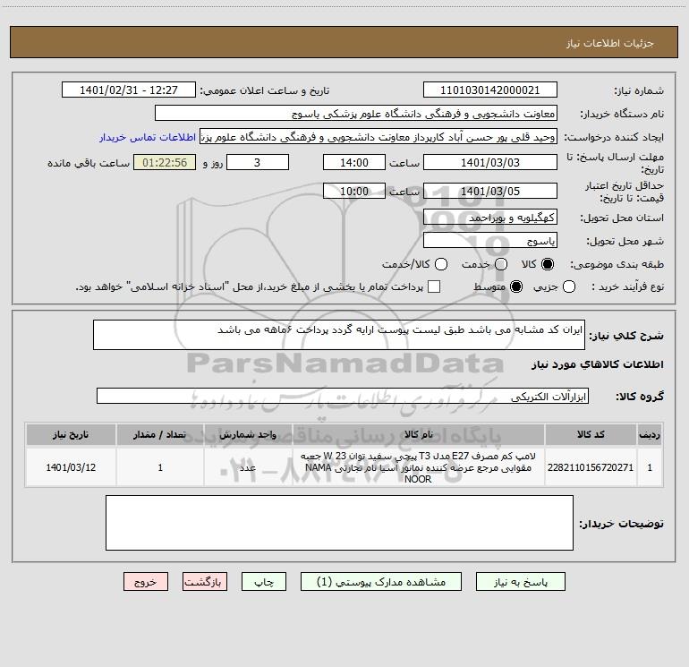 نام دستگاه خریدار:معاونت دانشجویی و فرهنگی دانشگاه علوم پزشکی یاسوج