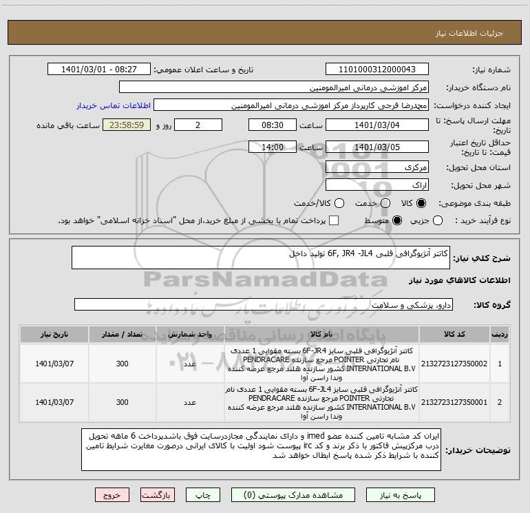 شرح کلی نیاز: کاتتر آنژیوگرافی قلبی 6F, JR4 -JL4 تولید داخل
