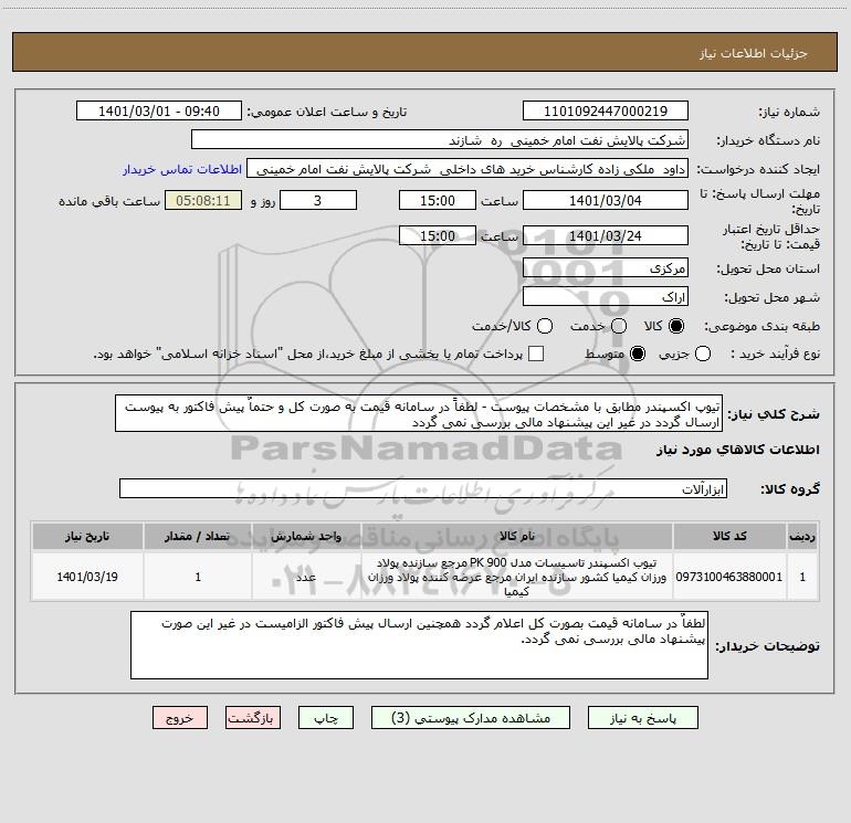 نام دستگاه خریدار:شرکت پالایش نفت امام خمینی ره شازند