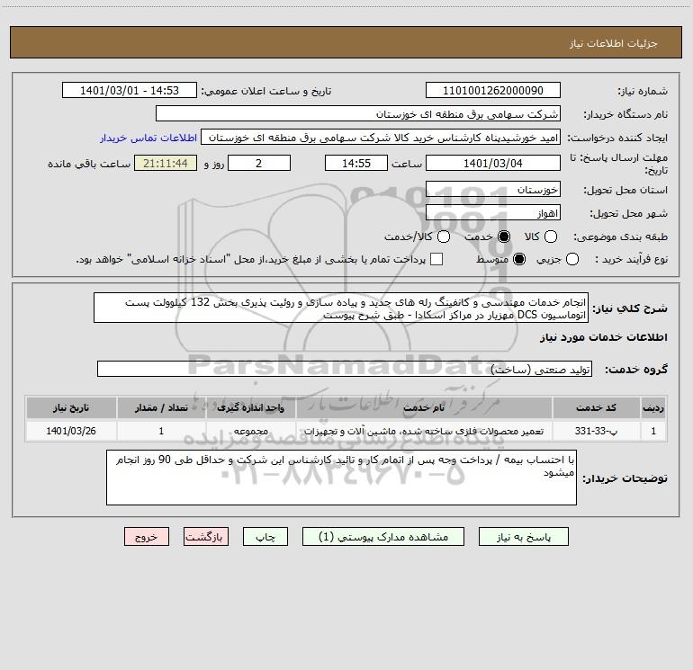 نام دستگاه خریدار:شرکت سهامی برق منطقه ای خوزستان