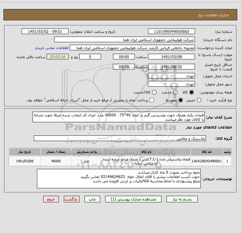 نام دستگاه خریدار:شرکت هواپیمایی جمهوری اسلامی ایران هما