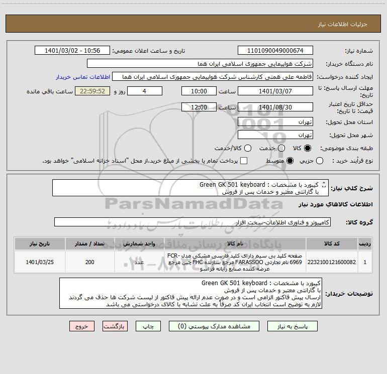 استعلام کیبورد با مشخصات : Green GK 501 keyboard با گارانتی معتبر و خدمات پس از فروش ارسال پیش فاکتور الزامی است , استعلام کیبورد با مشخصات : Green GK 501 keyboard با گارانتی معتبر و خدمات پس از فروش ارسال پیش فاکتور الزامی است