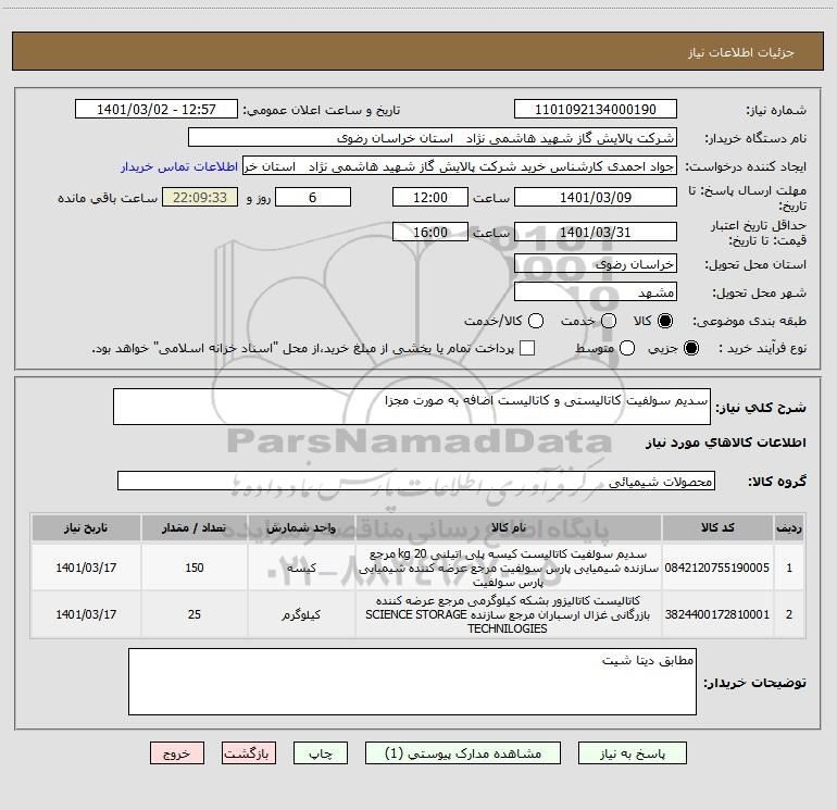 نام دستگاه خریدار:شرکت پالایش گاز شهید هاشمی نژاد استان خراسان رضوی