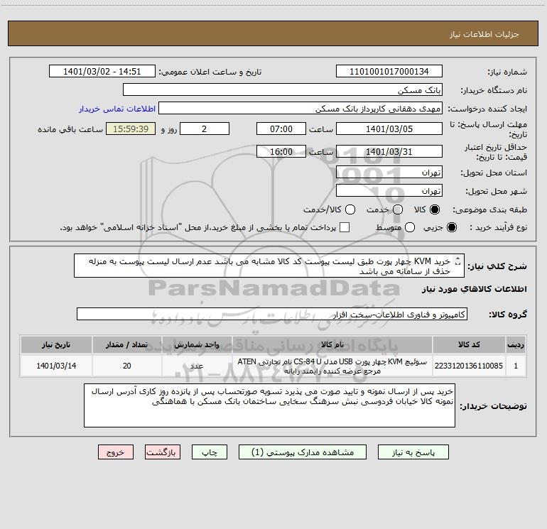 شرح کلی نیاز: خرید KVM چهار پورت طبق لیست پیوست کد کالا مشابه می باشد عدم ارسال لیست پیوست به منزله حذف از سامانه می باشد