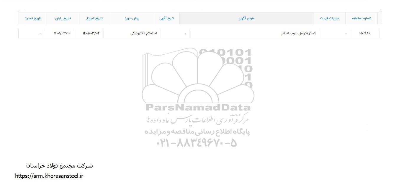 150986 | تستر فتوسل، لوپ اسکنر | استعلام الکترونیکی | 1401.3.4 | 1401.3.10 | - |