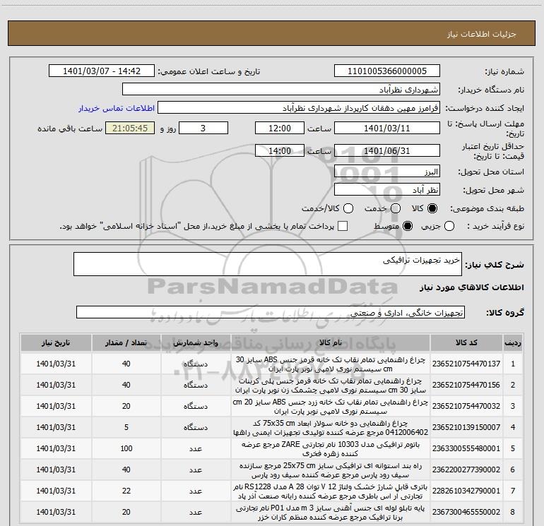شرح کلی نیاز: خرید تجهیزات ترافیکی