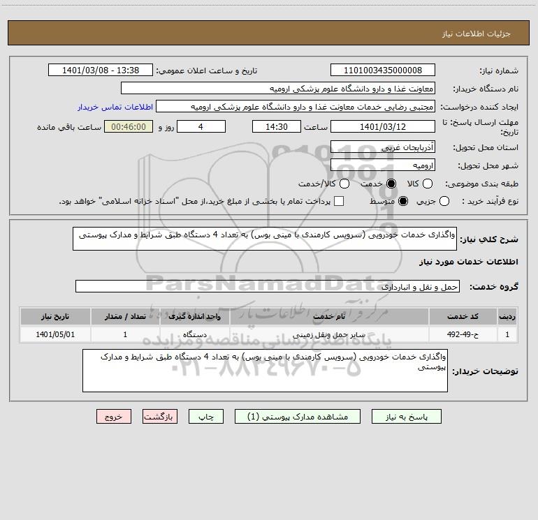شرح کلی نیاز: واگذاری خدمات خودرویی (سرویس کارمندی با مینی بوس) به تعداد 4 دستگاه طبق شرایط و مدارک پیوستی