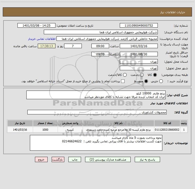 نام دستگاه خریدار:شرکت هواپیمایی جمهوری اسلامی ایران هما