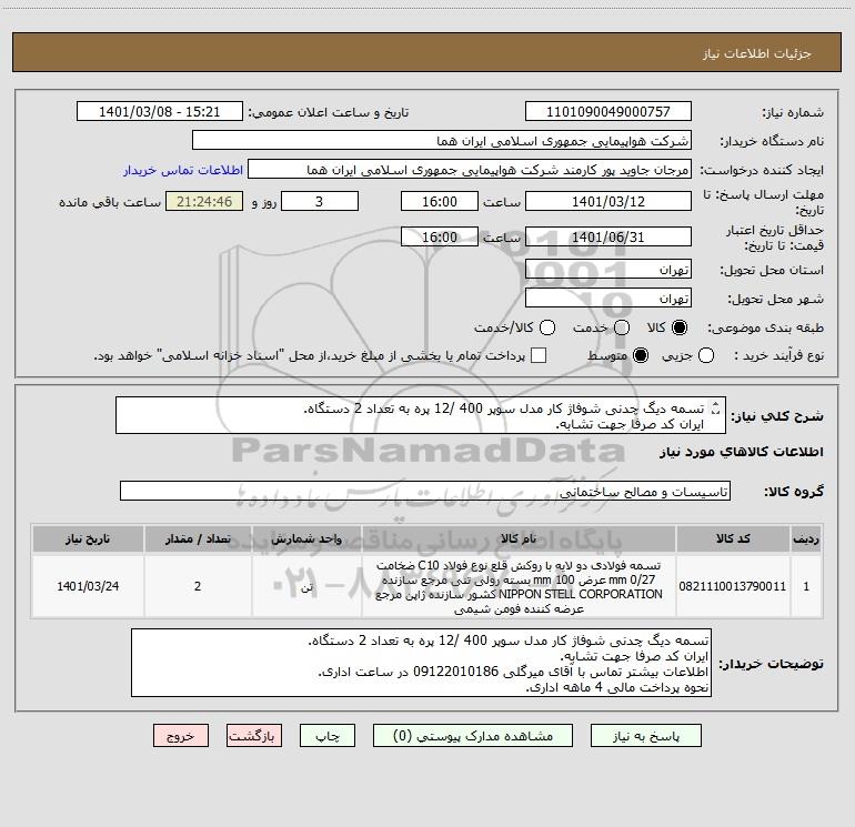 نام دستگاه خریدار:شرکت هواپیمایی جمهوری اسلامی ایران هما