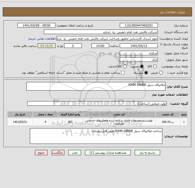 شرح کلی نیاز: مکانیکال سیل JOHN GRENE