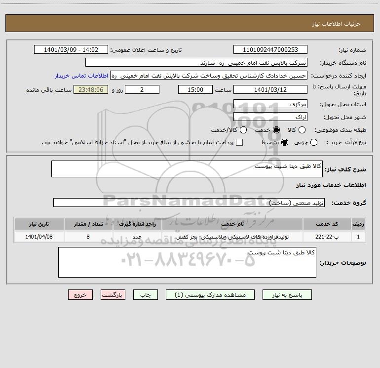 نام دستگاه خریدار:شرکت پالایش نفت امام خمینی ره شازند