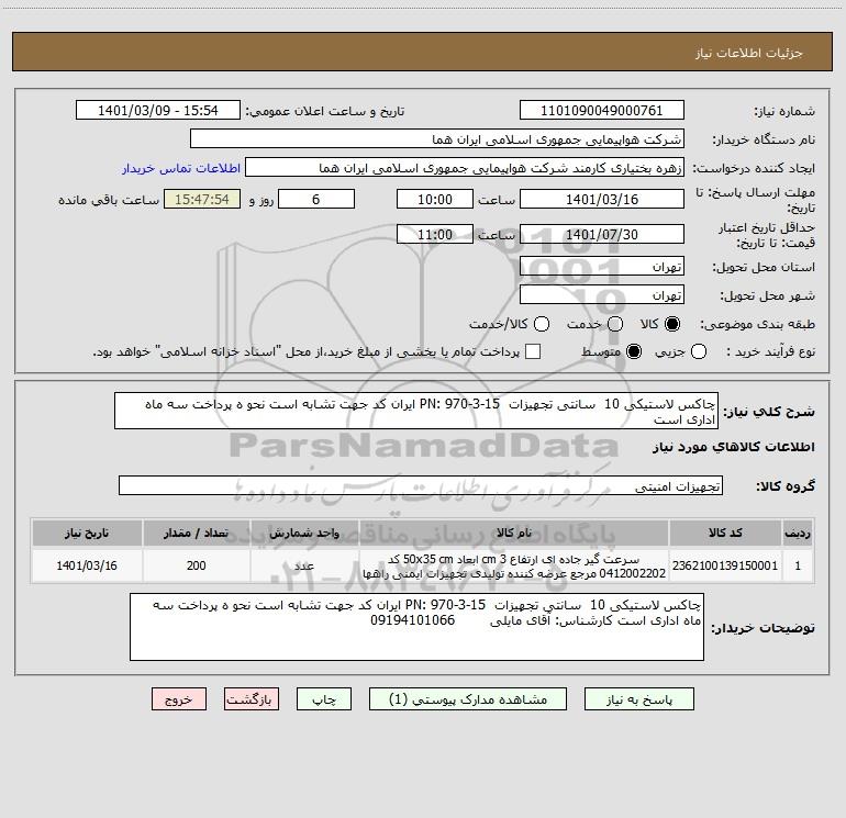 استعلام چاکس لاستیکی 10 سانتی تجهیزات PN: 970-3-15 ایران کد جهت تشابه است نحو ه پرداخت سه ماه اداری است , استعلام چاکس لاستیکی 10 سانتی تجهیزات PN: 970-3-15 ایران کد جهت تشابه است نحو ه پرداخت سه ماه اداری است