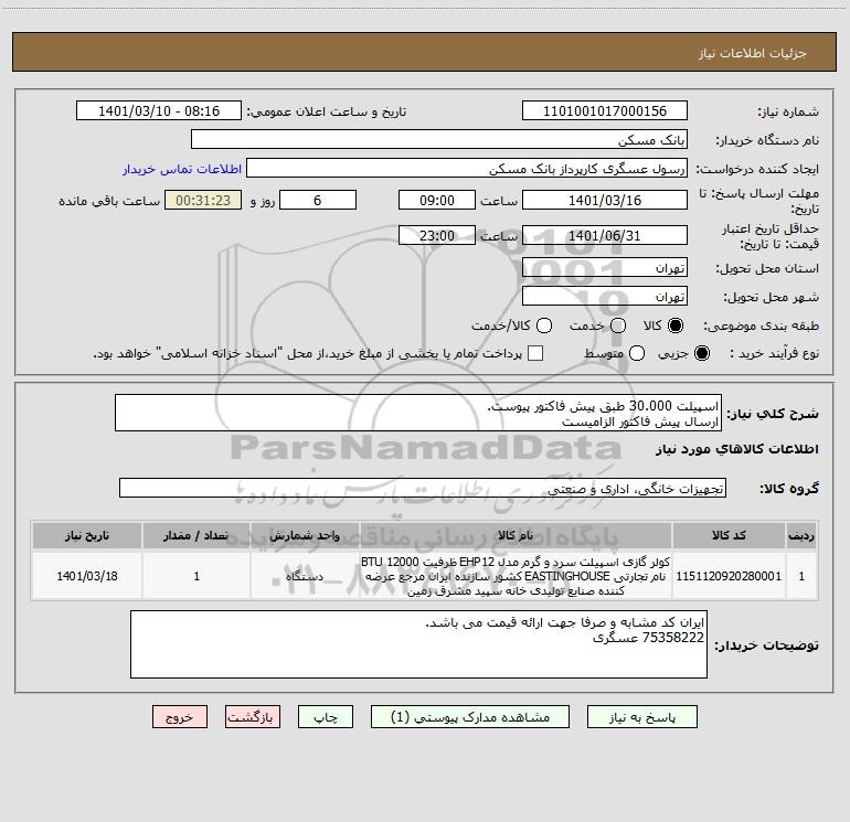 شرح کلی نیاز: اسپیلت 30.000 طبق پیش فاکتور پیوست.