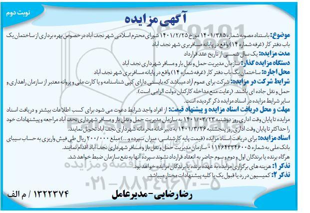 اگهی مزایده نوبت دوم