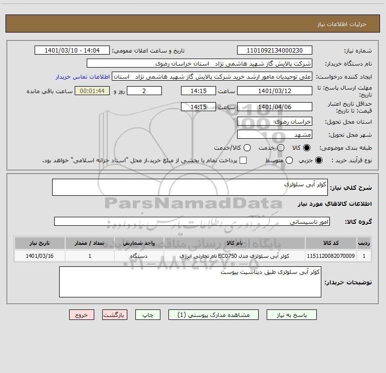نام دستگاه خریدار:شرکت پالایش گاز شهید هاشمی نژاد استان خراسان رضوی