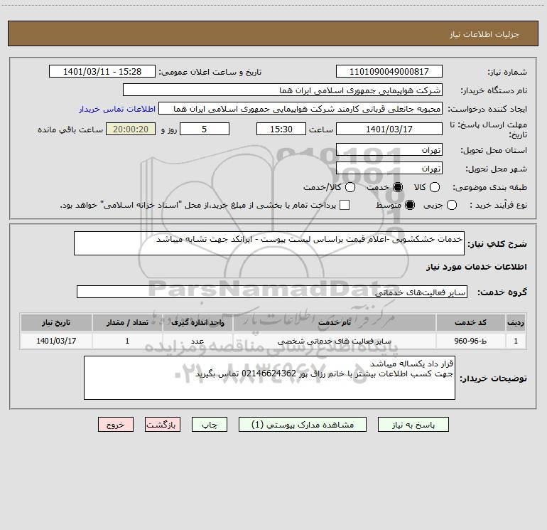 نام دستگاه خریدار:شرکت هواپیمایی جمهوری اسلامی ایران هما