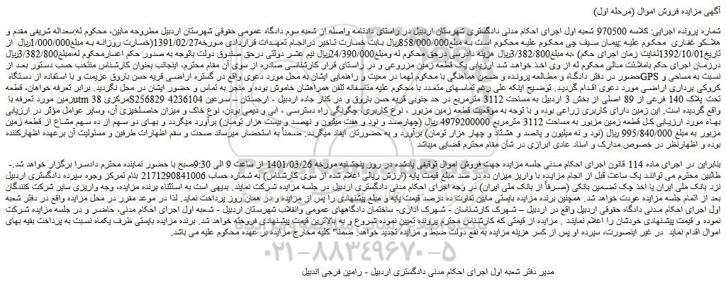 شعبه صادر کننده:شعبه اول اجرای احکام مدنی دادگستری شهرستان اردبیل/قدیم