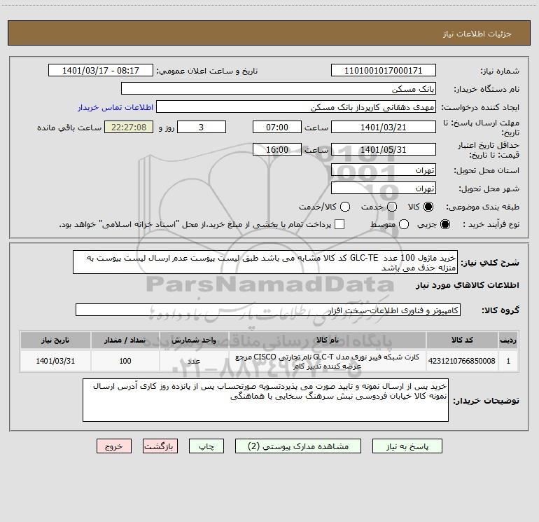 شرح کلی نیاز: خرید ماژول 100 عدد GLC-TE کد کالا مشابه می باشد طبق لیست پیوست عدم ارسال لیست پیوست به منزله حذف می باشد