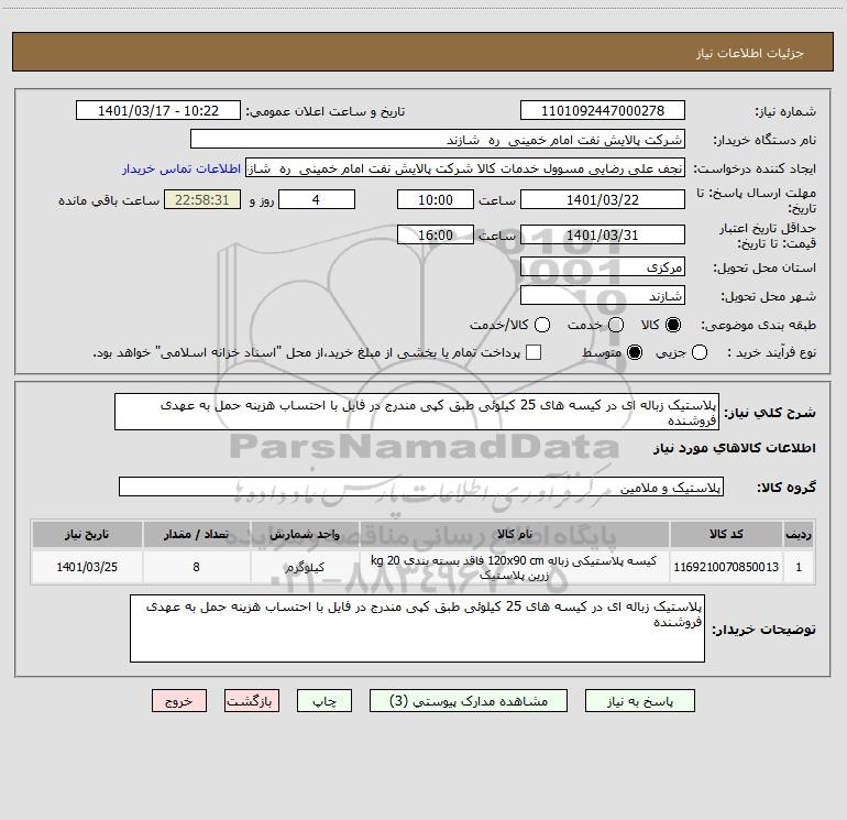 نام دستگاه خریدار:شرکت پالایش نفت امام خمینی ره شازند