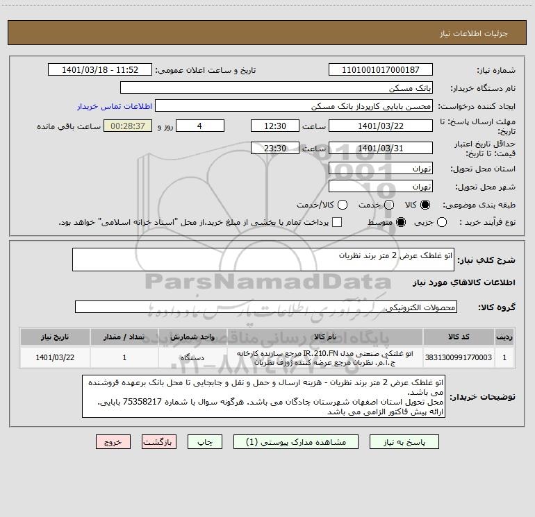 شرح کلی نیاز: اتو غلطک عرض 2 متر برند نظریان