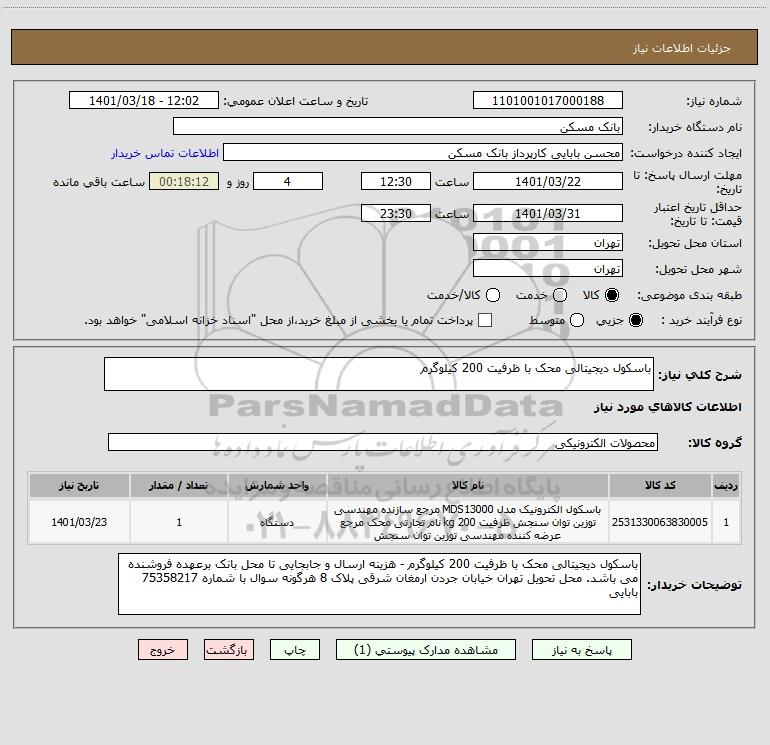 شرح کلی نیاز: باسکول دیجیتالی محک با ظرفیت 200 کیلوگرم