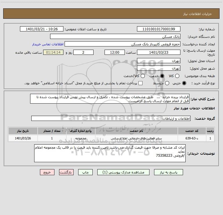 استعلام قرارداد بریده جراید ... طبق مشخصات پیوست شده ، تکمیل و ارسال پیش نویس قرارداد پیوست شده تا قبل از اتمام مهلت ارسال پاسخ الزامیست, استعلام قرارداد بریده جراید ... طبق مشخصات پیوست شده ، تکمیل و ارسال پیش نویس قرارداد پیوست شده تا قبل از اتمام مهلت ارسال پاسخ الزامیست
