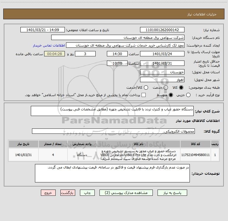 نام دستگاه خریدار:شرکت سهامی برق منطقه ای خوزستان