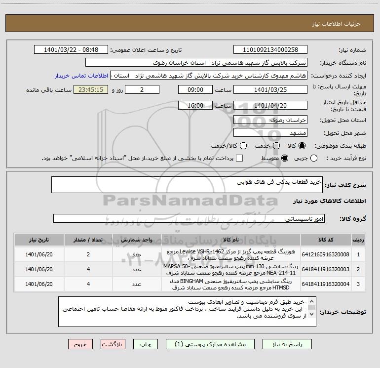 نام دستگاه خریدار:شرکت پالایش گاز شهید هاشمی نژاد استان خراسان رضوی