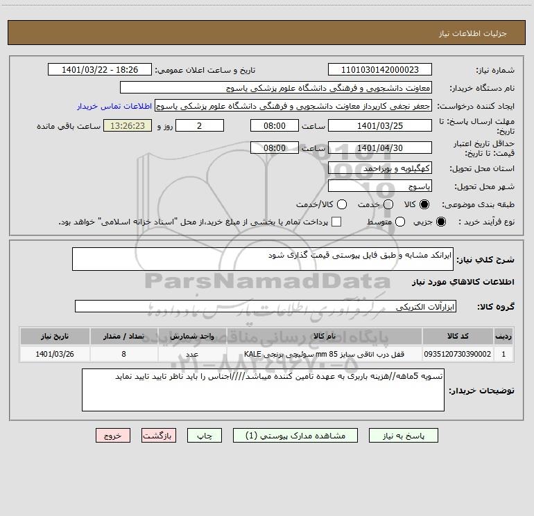 نام دستگاه خریدار:معاونت دانشجویی و فرهنگی دانشگاه علوم پزشکی یاسوج
