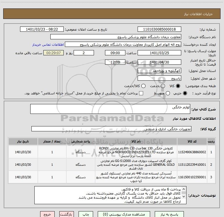 نام دستگاه خریدار:معاونت درمان دانشگاه علوم پزشکی یاسوج
