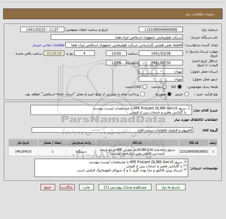 نام دستگاه خریدار:شرکت هواپیمایی جمهوری اسلامی ایران هما